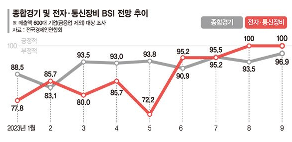 반면 글로벌 교역의 위축에도 반도체 경기가 상승함에 따라 수출은 양호한 회복세를 보이며 경기 회복을 견인하는 추세를 보이고 있습니다.