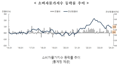 2023년 하반기 실적치가 기존 전망에 부합하였으며, 2024년에도 기존 전망과 유사한 성장세가 예상되고 지출항목별로는 내수 전망치를 하향 조정하고, 수출 전망치는 상향 조정하였습니다. 민간소비는 상품소비를 중심으로 증가세가 둔화된 점을 반영하여 기존 전망(1.8%)보다 소폭 낮은 1.7% 증가할 것으로 전망하였습니다. 설비투자는 기존 전망과 유사하게 2.3% 증가할 것으로 예상되나, 건설투자(-1.4%)는 부동산경기 하락을 반영하여 기존 전망(-1.0%) 보다 감소폭이 확대될 것으로 예상되며, 총수출은 반도체경기 반등과 세계 경제성장률 상향 조정을 반영하여 기존 전망(3.8%) 보다 높은 4.7% 증가할 것으로 전망하였습니다. 경상수지는 내수 증가세는 둔화되는 반면 수출 회복세는 확대됨에 따라 기존 전망(430억 달러 내외)을 상회하는 560억 달러 내외의 흑자로 전망하였습니다. 결과적으로 소비와 투자의 증가세가 둔화되는 반면, 수출 증가세는 확대되면서 2024년 경제성장률은 기존 전망과 동일한 2/2%로 전망되었습니다. 소비자물가 상승률은 내수 증가세 둔화를 반영하여 기존 전망(2.6%)보다 소폭 낮은 2.5%로 전망하였습니다. 근원물가(식료품 및 에너지 제외) 상승률도 기존 전망(2.4%) 보다 낮은 2.3%로 예상합니다. 내수 증가세 둔화에도 불구하고 30대 여성과 고령층의 노동공급 확대를 반영하여 취업자 수 증가폭은 기존 전망(21만 명)과 유사한 22만 명으로 예상하며, 실업률도 기존 전망과 동일한 3.0%로 전망합니다.